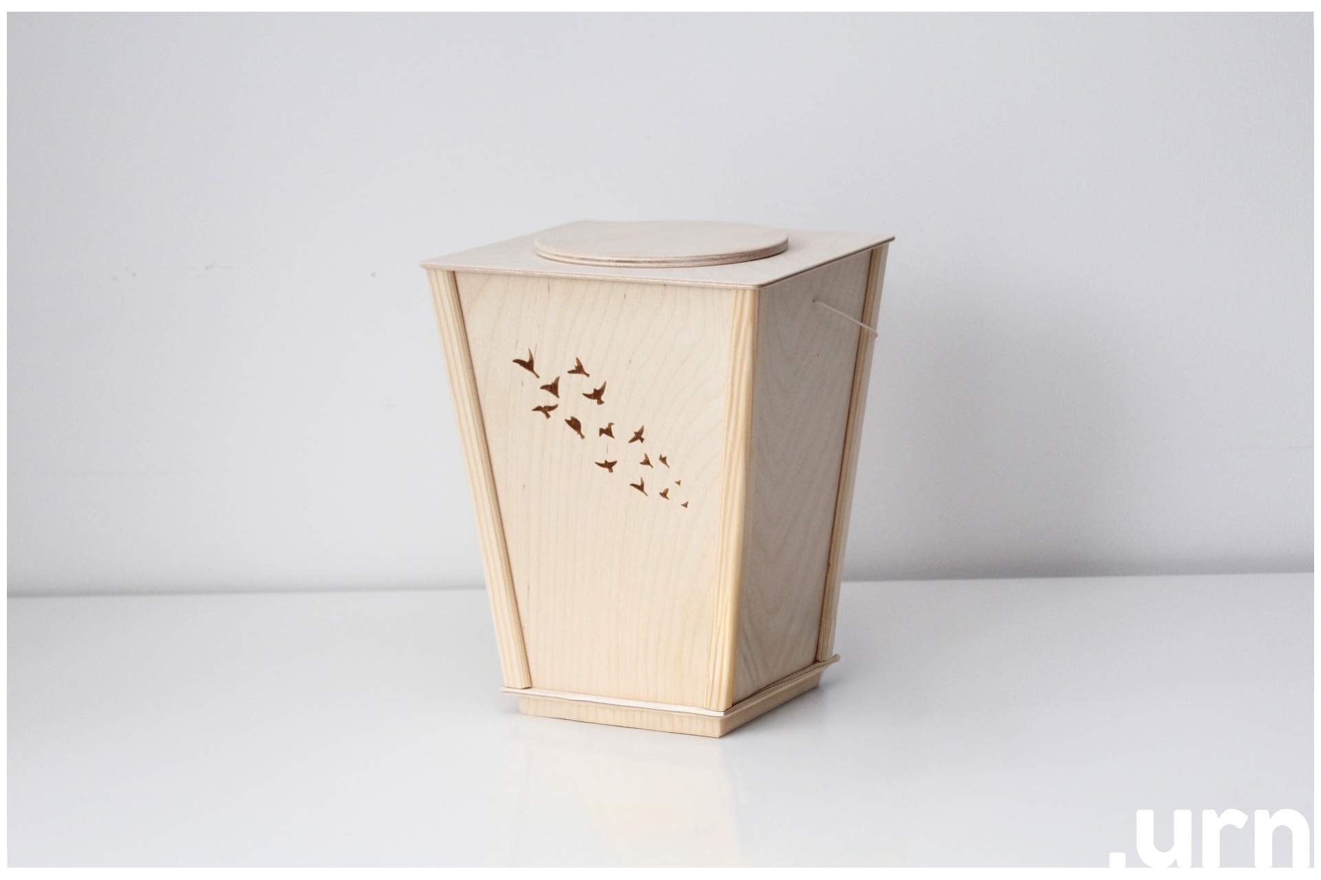 Naturaalsest kasevineerist ja puuvillase vahatatud nööriga ökoloogiline urn. Urni avamise ja sulgemise teeb hõlpsaks pöörates avatav kaas.