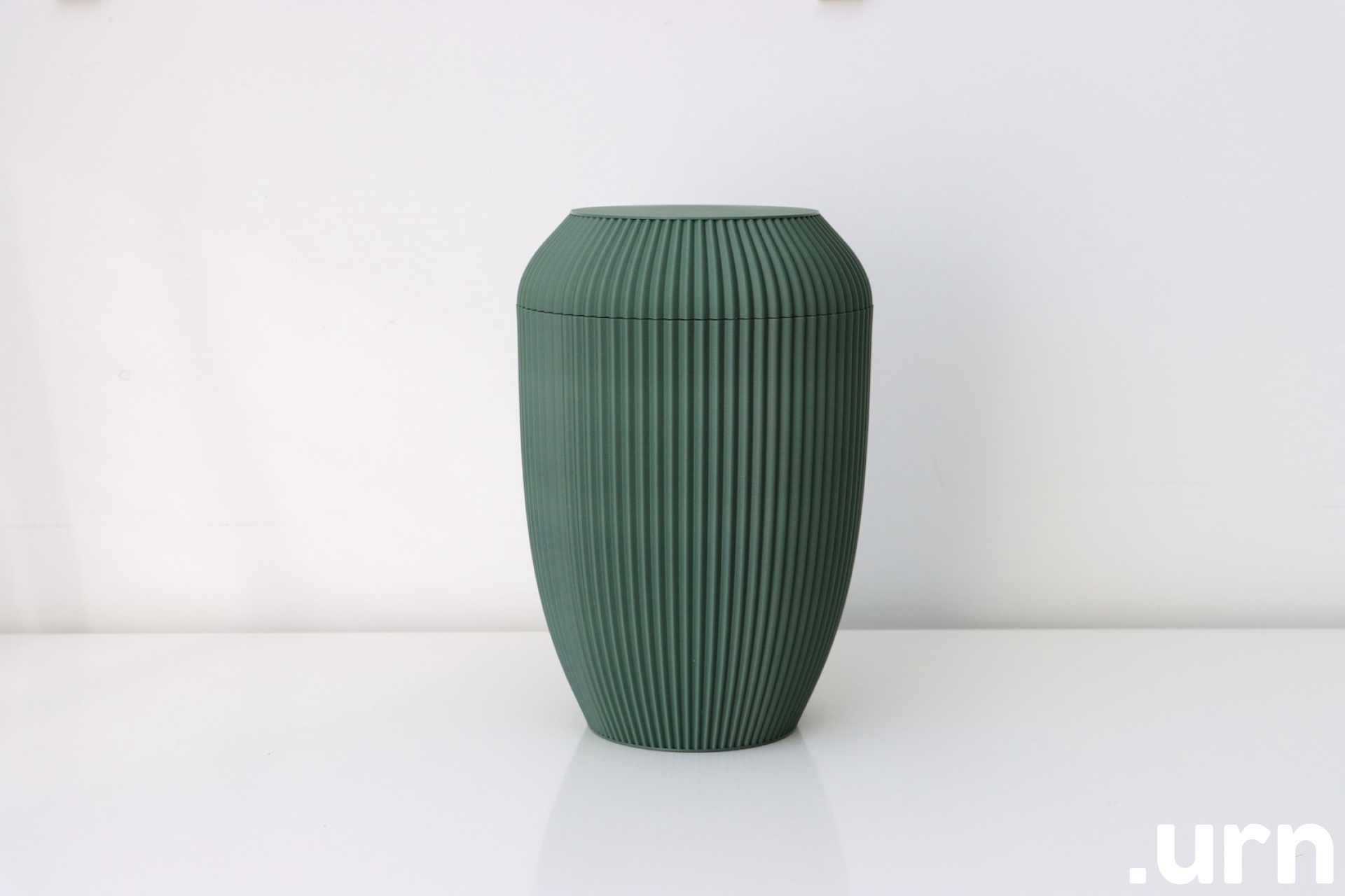 Peened, voolavad vertikaalsed jooned annavad urnile rahuliku ja harmoonilise välimuse. Ribiline disain ja matid värvid mängivad valgusega õrnalt, luues õrna sügavuse. Tipptasemel 3D-printimistehnoloogia ja ressursisäästlike materjalide kasutamine loob ajatu ilu ja jätkusuutliku elegantsi urni.